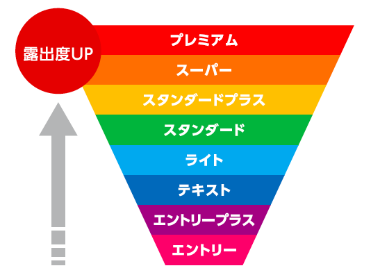 「プレミアム」「スーパー」「スタンダードプラス」「スタンダード」「ライト」「テキスト」「エントリープラス」「エントリー」の8プランをご用意しています。