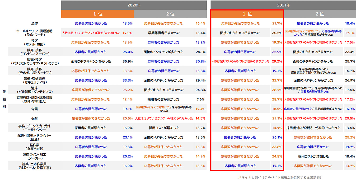 マイナビバイト アルバイト採用現場での課題(年度別) 2022.11.17 Post Share Hatena Line RSS feedly Pin it note この記事のタイトルとURLをコピーする ※マイナビバイト資料参照 Post Share Hatena Line RSS feedly Pin it note アルバイト採用現場での課題(職種別) 前の記事 長期連休期間の求職者の動きに注目! 次の記事