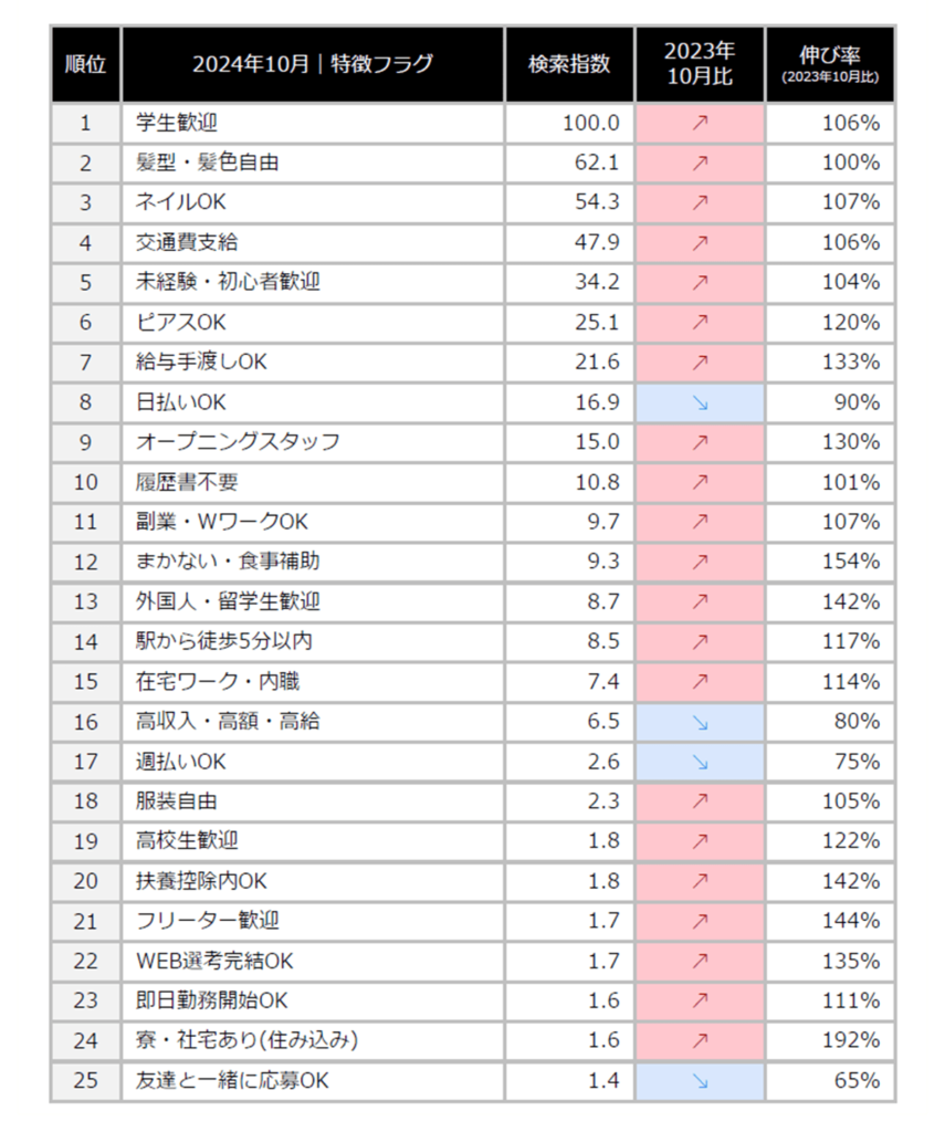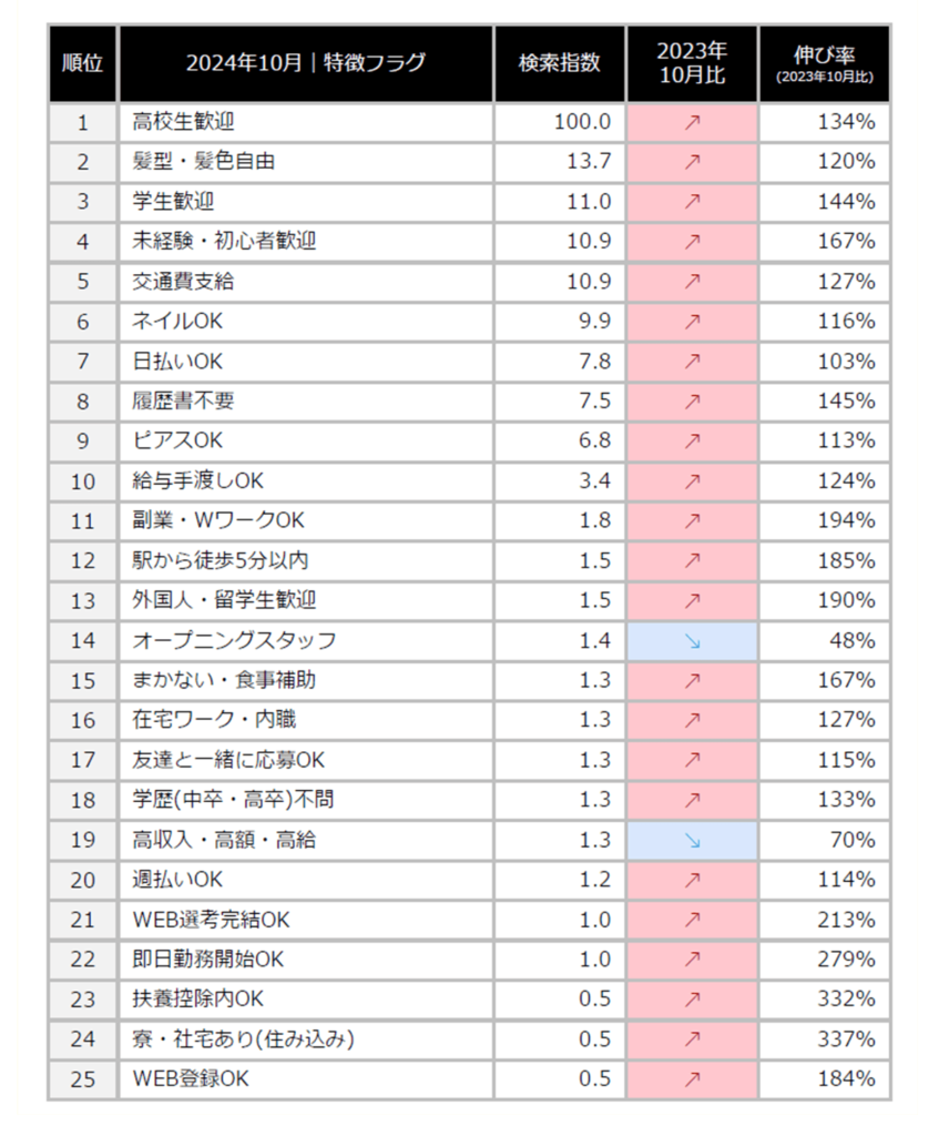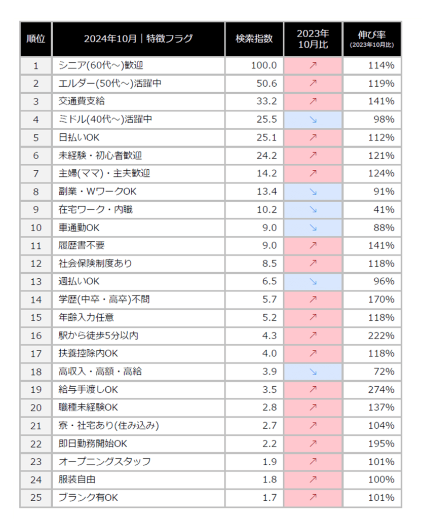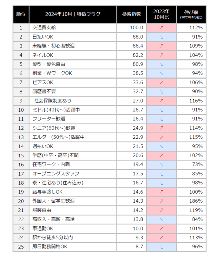 交通費支給フラグや社会保険制度など福利厚生に関する検索が増加。