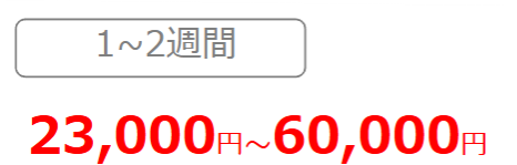 各エリアによって金額が異なりますが、1~2週間で23,000円~60,000円です。