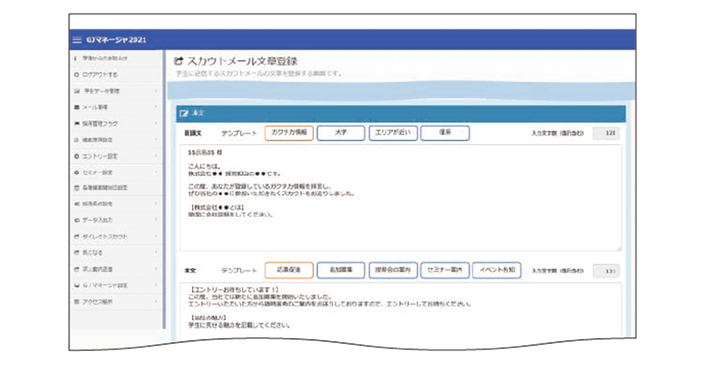 またスカウト文面はわずか3クリックで完了するテンプレートを用意。