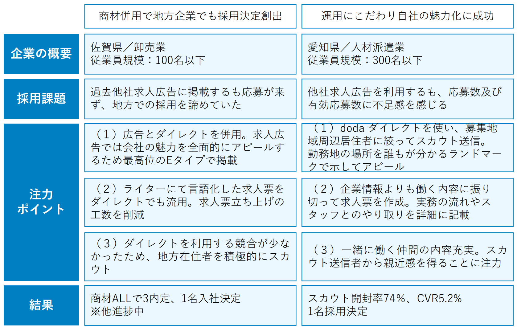 採用決定をミッションとするカスタマーサクセスを任命し、運用だけでなくdodaダイレクトによらない採用全体の課題解決に向けて支援しています。