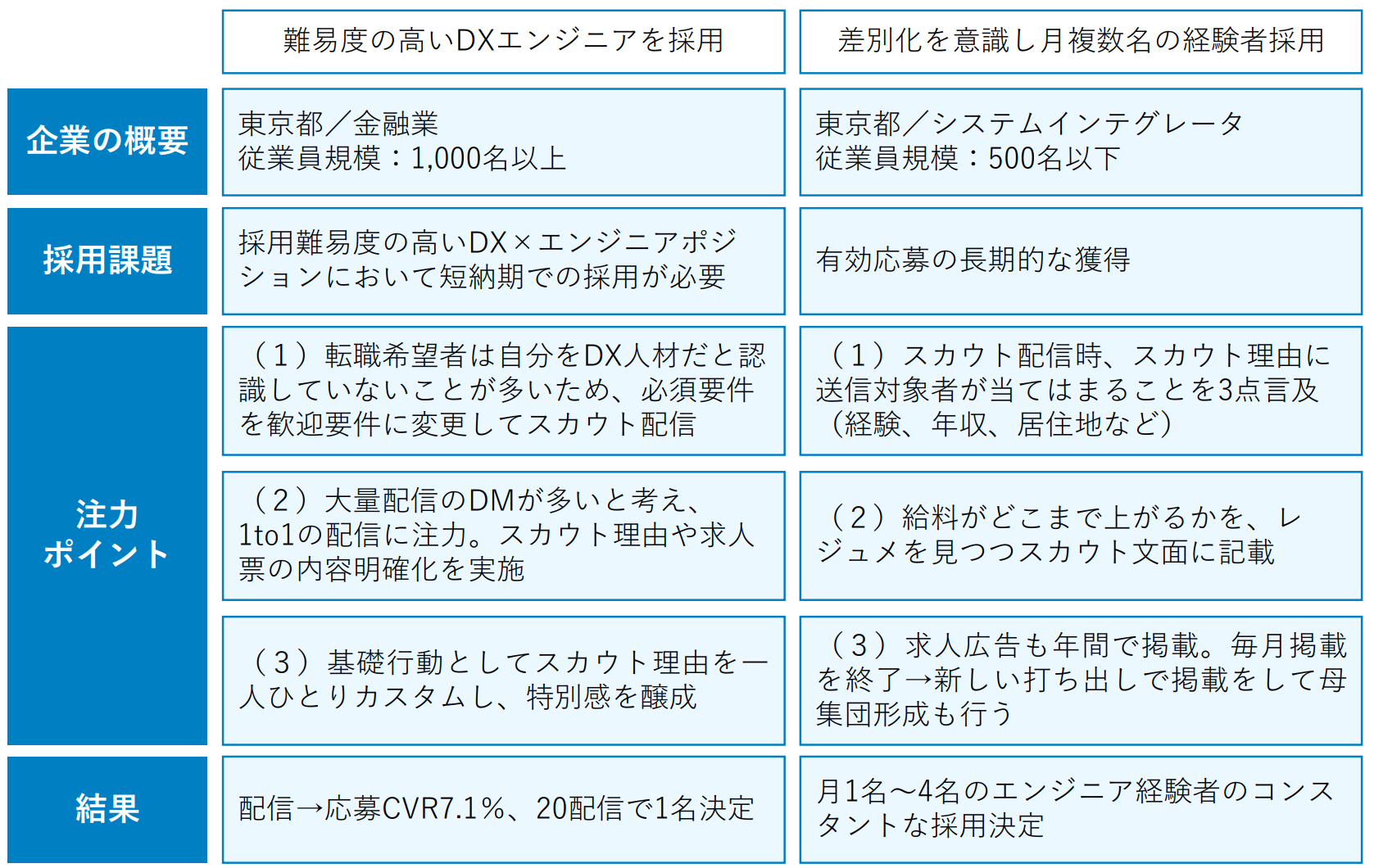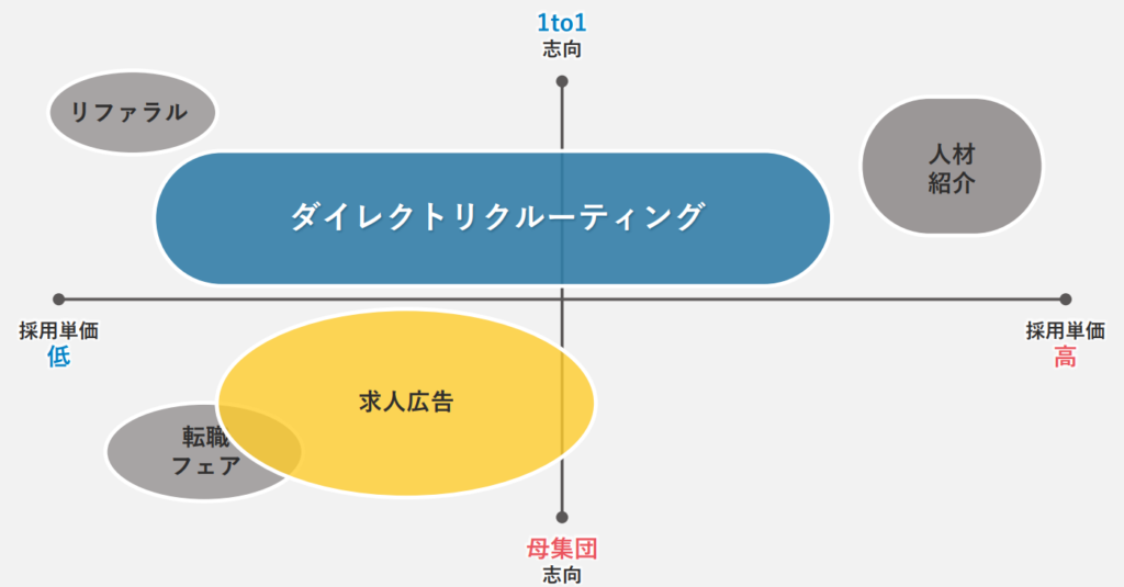 求人広告とダイレクトリクルーティングの併用により、母集団形成から1to1アプローチまで可能になり、転職希望者との接点を最大化できます。