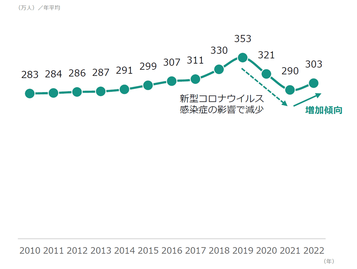 転職者数は、2011年以降増加傾向で推移した後、感染症の影響により2020年から大幅に減少。