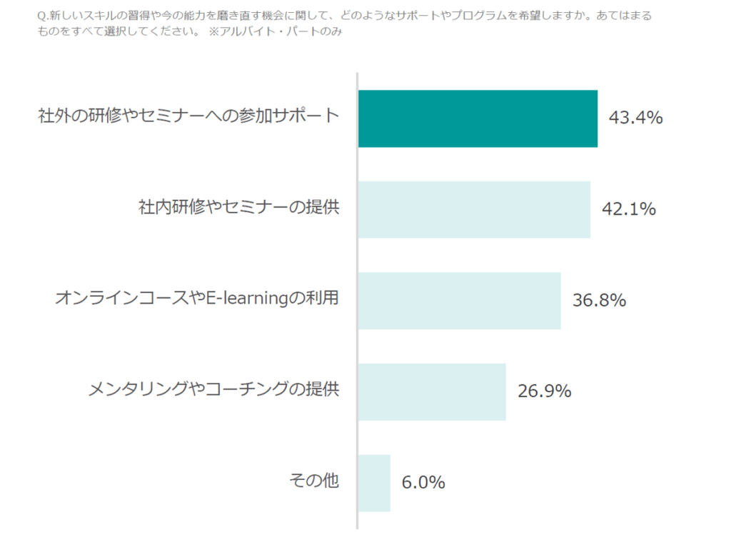 社外の研修やセミナーの参加サポートをはじめとするサポートも検討を。