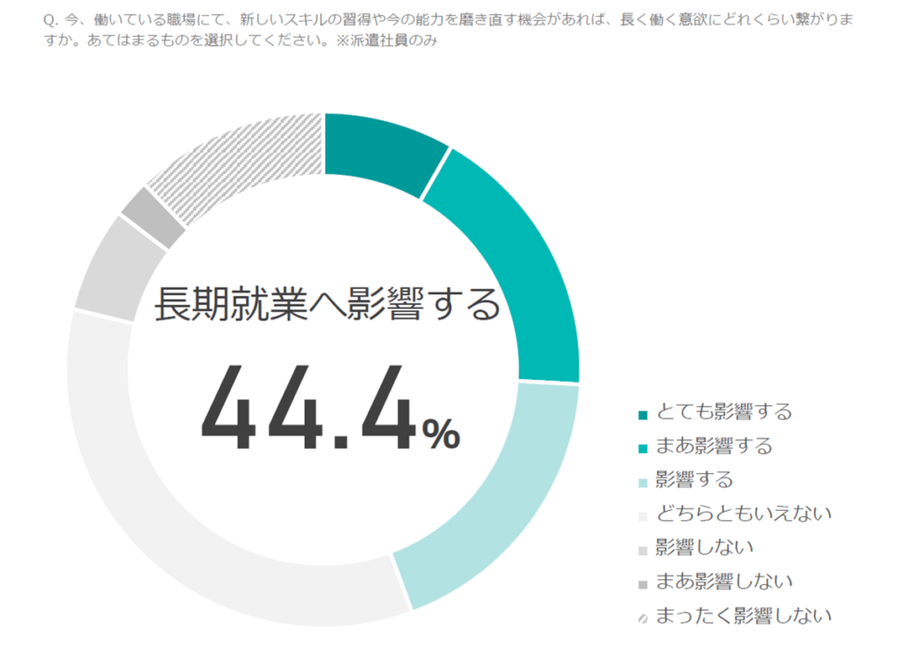 リスキリングへの取り組みが長く働く意欲に繋がる割合が約半数。