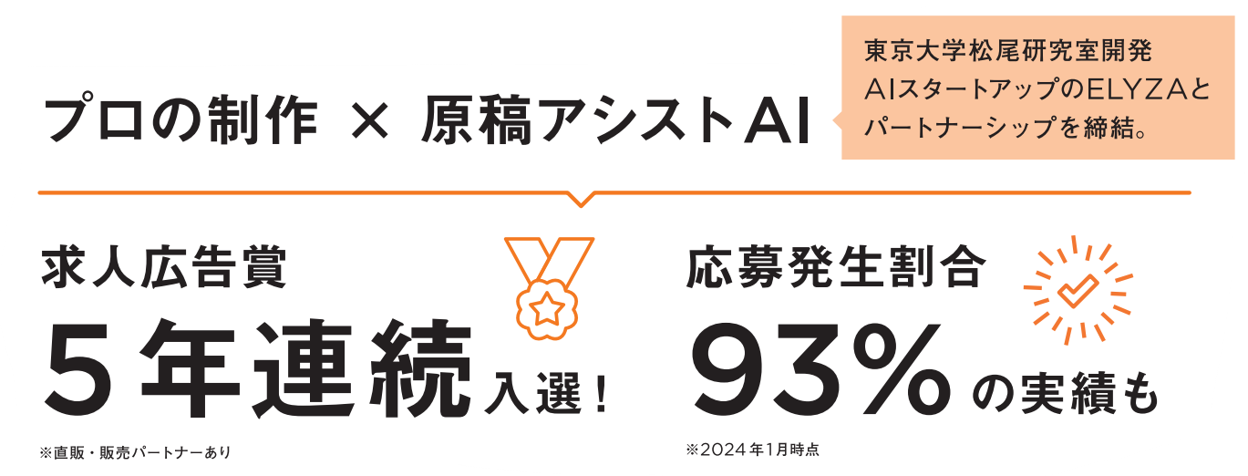 採用成功率を追求したアシストAIと細かな情報収集・ペルソナ設定により、的確にターゲティングされた原稿をプロのスタッフが制作します。