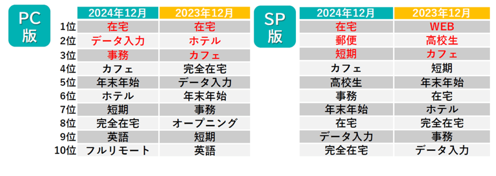 サイト内検索フリーワード24年12月/23年12月(全国)