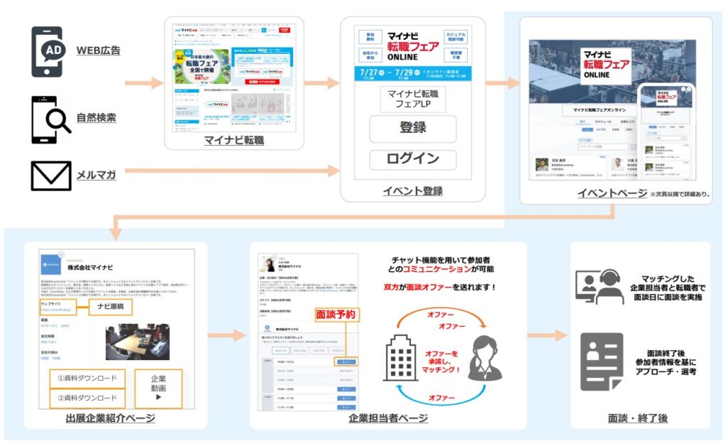 マイナビ転職フェア オンラインへの来場を促すメールをマイナビ転職会員に配信可能です。