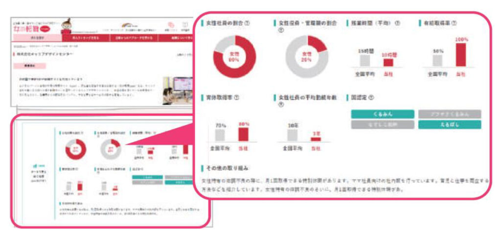 ・PC版求人詳細ページ(女性社員の割合/育休取得率/残業時間の3項目)