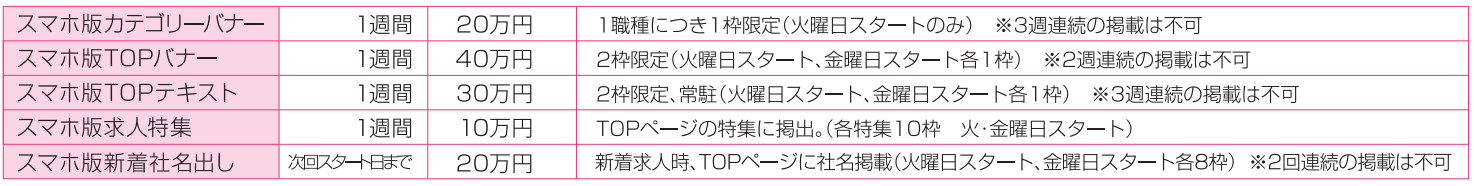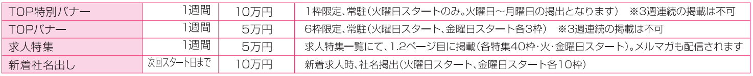 ※1原稿1職種募集が掲載規定となります。