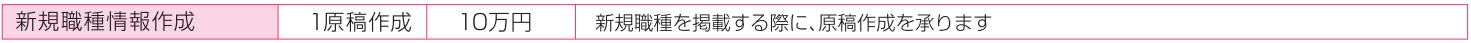 ●取材・制作後または掲載スタート後に追加で原稿作成を行う場合は別途新規職種情報作成費をご請求させて頂きます。