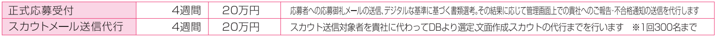 ※正式応募受付サービスに関しては契約期間内に発生した応募者への対応完了まで業務を行わせて頂きます。