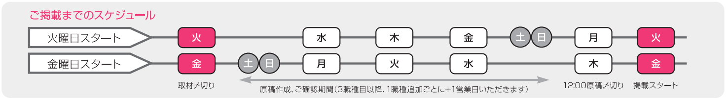 ※制作期間として通常の求人広告と同様の作成期間を要します。