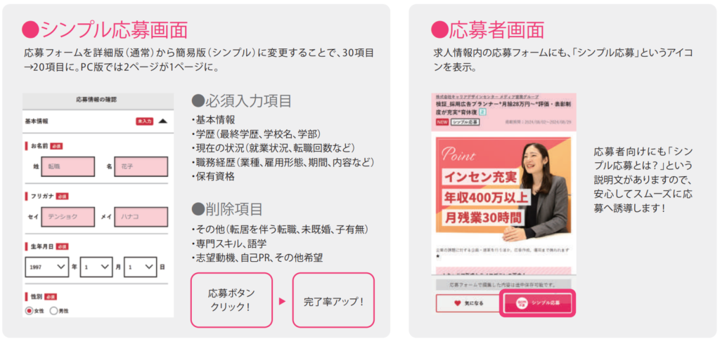 応募フォームの入力途中で離脱してしまうユーザーを減らし、応募完了率アップが狙えます!