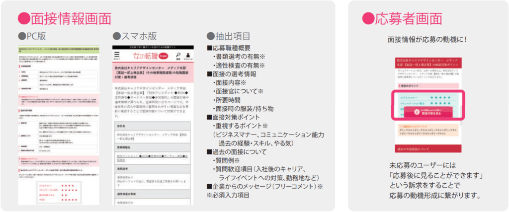 - 事前に面接情報を見て面接に臨むことができるのでドタキャンを抑止する効果があります!