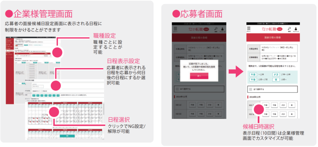 - 企業様の面接候補日が設定できるため、一次面接の日程調整がスムーズになります!