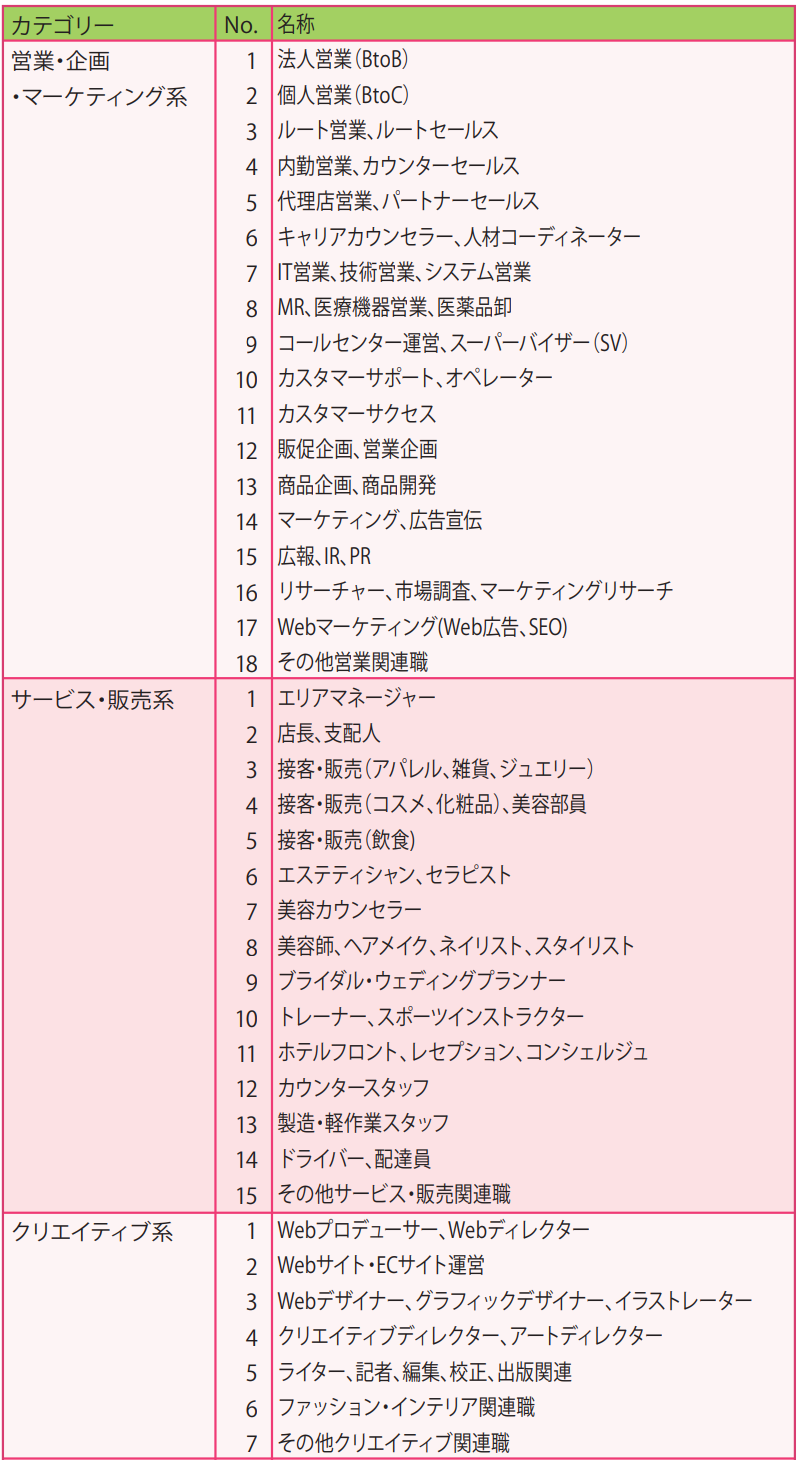 職種カテゴリー